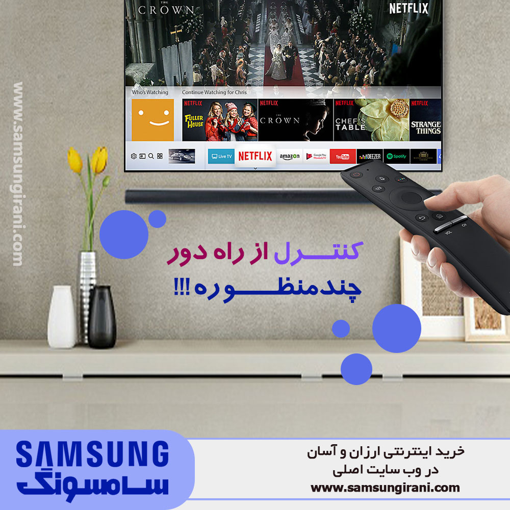 کنترل از راه دورچندمنظوره : نهایت کنترل را در دستان خود داشته باشید. کنترل همه دستگاههای متصل را تنها با کنترل از راه دور چندمنظوره در دست بگیرید. به لطف قابلیت کنترل صوتی دیگر مجبور نیستید بین کانالهای تلویزیونی بگردید.