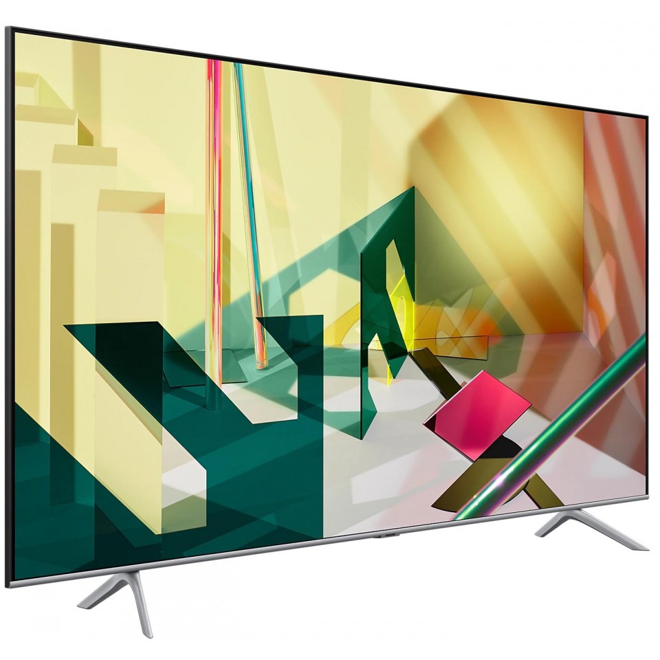 تلویزیون سامسونگ Q70T سایز 55 اینچ یکی از تلویزیون های 2020 سامسونگ می باشد. این تلویزیون با مدل کامل QA55Q70TAUXTW نیز در بازار شناخته شده است. تلویزیون سامسونگ Q70T ارزان ترین تلویزیون گیمینگ سامسونگ با صفحه نمایش QLED در سال 2020 می باشد. این محصول به عنوان مدل جدید و جایگزین تلویزیون سامسونگ Q70R شناخته می شود که در سال گذشته معرفی و به بازار عرضه شد. تلویزیون Q70T جزو سری 7 سامسونگ می باشد و برای گیمر ها گزینه کاملا مناسب و مقرون به صرفه ای محسوب می شود. همچنین برای علاقه مندان به تماشای فیلم و البته برای مصارف خانگی و روزمره گزینه کاملا مناسبی است. این محصول از کیفیت تصویر 4K و صفحه نمایش QLED برخوردار است. تلویزیون QLED سامسونگ 55Q70T از نور پس زمینه Edge LED و پنل VA برخوردار است. این تلویزیون از تکنولوژی Supreme UHD Dimming برای کنترل نور پس زمینه صفحه نمایش و ایجاد کنتراست در تصاویر استفاده کرده است. همچنین به کمک تکنولوژی Mega Contrast باعث بهبود کنتراست تصاویر می شود و صحنه های دقیق تری را در اختیار شما قرار می دهد. صفحه نمایش این تلویزیون دارای تکنولوژی Dual LED می باشد و به کمک قابلیت Brightness/Color Detection نور سرد و گرم را تنظیم کرده و با بهبود جزئیات و ایجاد کنتراست، صحنه های فوق العاده و واقعی را در اختیار شما قرار می دهد. صفحه نمایش این تلویزیون دارای عمق رنگ 10 بیت (8 بیت + FRC) می باشد و به کمک تکنولوژی Quantum Dot توانایی نمایش حجم رنگ 100% در فضای DCI-P3 را دارد و باعث نمایش صحنه هایی چشم نواز می شود. صفحه نمایش این تلویزیون از رفرش ریت 120 هرتز برخوردار است و صحنه های سریع و اکشن را به کمک تکنولوژی Motion Rate 240 و Auto Motion Plus به خوبی نمایش می دهد و از تاری آن ها جلوگیری می کند. صفحه نمایش این تلویزیون به تکنولوژی Wide Viewing Angle مجهز شده است و باعث می شود تقریبا از هر زاویه ای بتوانید به تماشای تلویزیون بپردازید. تلویزیون 4K سامسونگ 55Q70T از پردازشگر Quantum Processor 4K بهره مند است که وظیفه پردازش صدا و تصویر را دارد. این پردازشگر به کمک تکنولوژی 4K Upscaling و AI Upscale رزولوشن تصاویر را افزایش می دهد، نویز آن ها را از بین می برد و باعث می شود تصاویری که کیفیت پایین تری دارند در حد 4K نمایش داده شوند. سامسونگ این تلویزیون را به سنسور تشخیص نور (Eco Sensor) و تکنولوژی Adaptive Picture مجهز کرده است و به کمک آن نور صفحه نمایش را با توجه به نور محیط و محتوای در حال پخش تنظیم می کند تا در هر شرایطی بتوانید از بهترین کیفیت تصویر بهره مند شوید. همچنین قابلیت Natural Mode نیز نور صفحه نمایش را بر اساس نور محیط تنظیم می کند و تصاویر واضحی را در اختیار شما قرار می دهد. این محصول دارای قابلیت Film Mode می باشد و با افزایش فریم صحنه ها باعث می شود این تلویزیون برای تماشای فیلم مناسب باشد. این تلویزیون به کمک تکنولوژی Quantum HDR محتوای HDR را به خوبی نمایش می دهد و از فرمت های HDR10+ و HLG پشتیبانی می کند. این محصول با استفاده از تکنولوژی Digital Clean View و Analog Clean View نویز سیگنال های آنالوگ و دیجیتال دریافتی را کاهش می دهد و آن ها را واضح و دقیق در اختیار شما می گذارد. این محصول دارای PQI یا شاخص کیفیت تصویر 3400 است و یکی از تلویزیون های میان رده و با کیفیت سامسونگ محسوب می شود. شاخص کیفیت تصویر یا PQI با بررسی تلویزیون ها در آزمایشگاه های مخصوص سامسونگ تعیین می شود و برای مقایسه کیفیت تصویر تلویزیون ها با یکدیگر کاربرد دارد. این تلویزیون از 4 پورت HDMI برخوردار است و پورت شماره 4 آن از نوع HDMI 2.1 می باشد و با پشتیبانی از کیفیت تصویر 4K@120Hz، برای بازی کردن با کنسول های نسل نهم کاملا مناسب است. همچنین این تلویزیون با استفاده از قابلیت VRR و ALLM رفرش ریت متغیر و input lag پایین را ارائه می دهد و تجربه لذت بخشی از گیمینگ را برای شما به ارمغان می آورد. قابلیت Dynamic Black EQ در این محصول به کار رفته که باعث می شود جزئیات تصاویر در صحنه های تاریک بازی ها واضح تر شوند. تکنولوژی Game Motion Plus نیز صحنه های سریع بازی ها را روان و واضح نمایش می دهد و از تاری آن ها جلوگیری می کند. این 