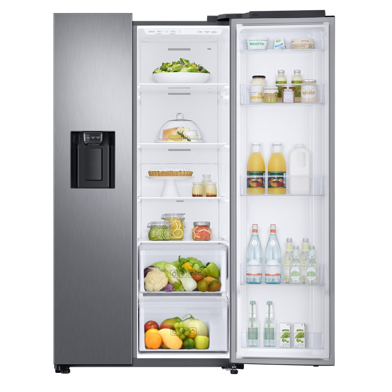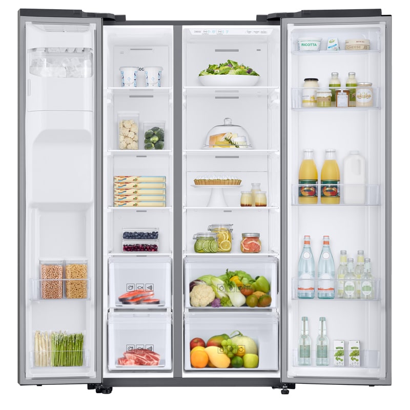 علاوه بر اهمیت بالای نمای خارجی ساید بای ساید، محفظهی داخلی و طراحی آن نیز از اهمیت ویژهای برخوردار است. طراحی مناسب این بخش کمک خواهد کرد تا خوراکیها را به حجم بالا در محفظههای یخچال و فریزر قرار دهید و همچنین سبب ایجاد محیطی مرتب خواهد شد. یخچال و فریزر RS68 دارای ظرفیت کلی 617 لیتر میباشد که 407 لیتر آن مختص یخچال و 210 لیتر آن مختص فریزر میباشد. با این حجمهای بالا میتوانید سوپرمارکت کوچکی را در گوشهای از آشپزخانهی ایجاد کنید و در صورت نیاز خوراکیها را در آن قرار داده و یا برداشت نمایید.