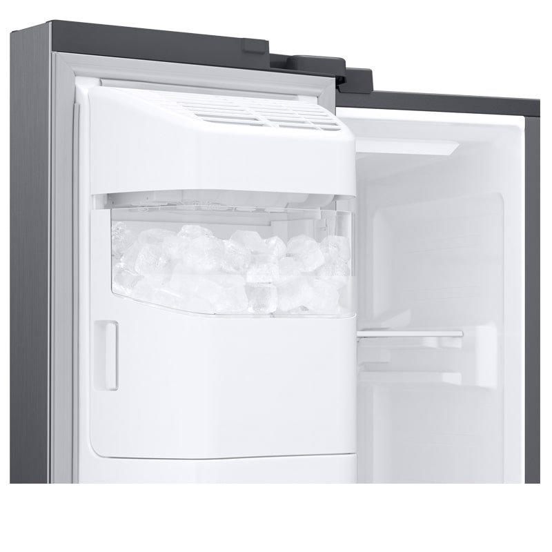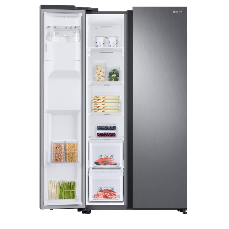 یخچال ساید بای ساید سامسونگ RS68 دارای ظرفیت 664 لیتر میباشد و این امکان را فراهم میکند تا انواع خوراکیها را با تنوع و حجم بالا در محفظههای یخچال و فریزر قرار دهید. فناوری SpaceMax در این یخچال ساید بای ساید کمک میکند تا بدون نیاز به افزایش حجم خارجی این مدل، میزان حجم داخلی ساید بای ساید افزایش یابد. بر روی درب سمت چپ آبریز و یخساز قرار گرفته است تا بدون نیاز به باز کردن دربها به آب خنک و یخ دسترسی داشته باشید. در این یخچال ساید برخلاف بسیاری از مدلهای دیگر پنل نمایشگر و تنظیمات در کنار آبریز و یخساز قرار نگرفته است و مکان آنها به منطقهی پنهان و در محفظهی داخلی انتقال یافته است.
