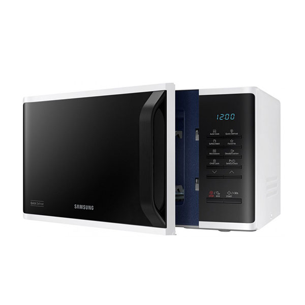 مایکروویو 23 لیتری مدل MS23K3513 یکی از محصولات برند معتبر سامسونگ است که با قابلیت های گوناگون در سال 2019 به بازار عرضه شده است. این دستگاه دارای طراحی ساده و شیک و به رنگ سفید میباشد؛ صفحه نمایش دستگاه LED است و دارای حافظه می باشد. از مشخصه های این دستگاه میتوان به حالت اکو، قفل کودک، برچسب راهنمای سریع، تایمر، یخ زدایی سریع، گرم نگه دارنده و بو زدایی اشاره کرد. قیمت مایکروویو MS23K3513 سامسونگ در فروشگاه بابیروز بسیار مناسب است و با انتخاب این محصول تجربهی یک خرید متفاوت را با ما خواهید داشت.مایکروویو 23 لیتری مدل MS23K3513 یکی از محصولات برند معتبر سامسونگ است که با قابلیت های گوناگون در سال 2019 به بازار عرضه شده است. این دستگاه دارای طراحی ساده و شیک و به رنگ سفید میباشد؛ صفحه نمایش دستگاه LED است و دارای حافظه می باشد. از مشخصه های این دستگاه میتوان به حالت اکو، قفل کودک، برچسب راهنمای سریع، تایمر، یخ زدایی سریع، گرم نگه دارنده و بو زدایی اشاره کرد. قیمت مایکروویو MS23K3513 سامسونگ در فروشگاه بابیروز بسیار مناسب است و با انتخاب این محصول تجربهی یک خرید متفاوت را با ما خواهید داشت.