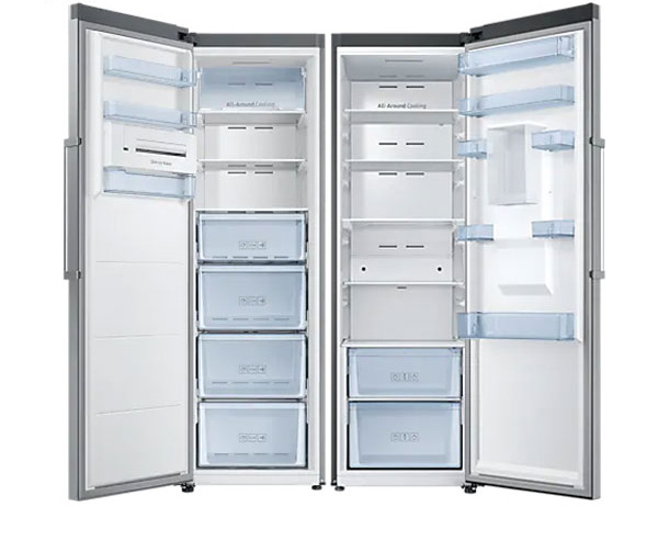 اگر تعداد نفرات خانواده شما زیاد است، مسلماً حجم مواد غذایی مصرفی شما بیشتر خواهد بود. اگر زیاد مهمانی برگزار می کنید، باید مواد غذایی بیشتری ذخیره کنید. نگهداری یک کیک برای مراسم تولد یا یک هندوانه بصورت درسته در یخچال های معمولی کار دشواری است. علاوه بر این، نگهداری تمام مواد غذایی لازم با یک نوبت خرید، بسیار موثرتر و بهتر از این است که مجبور باشید مرتب برای خرید مواد غذایی به فروشگاه مراجعه کنید. یخچال یخچال دوقلوی سامسونگ RR39 و RZ32 فضای نگهداری و ذخیره سازی قابل توجه و ...