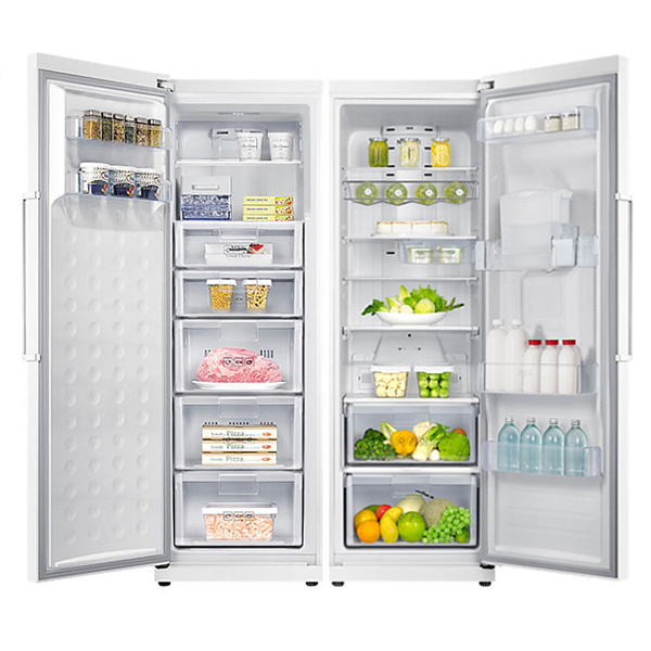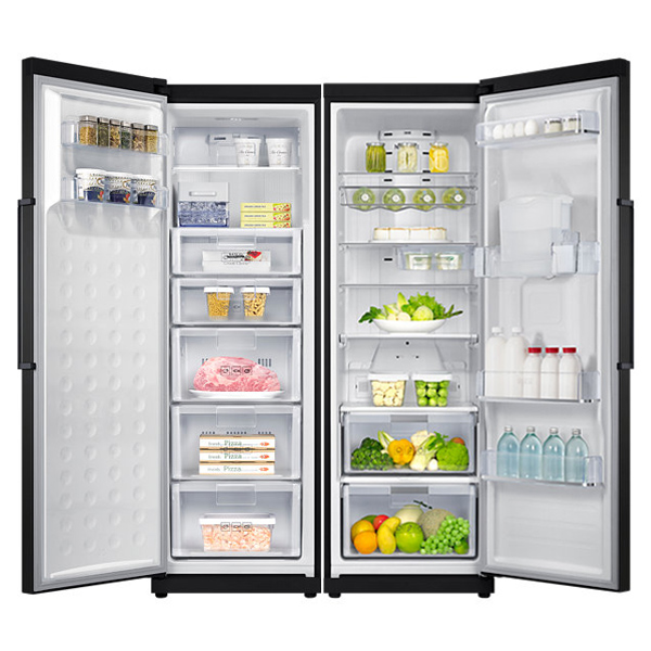 یکی از نوآوری هایی که این یخچال تک درب و فریزر تک درب دوقلوی بلند جدید را در مقایسه با دستگاه های ساید بای ساید معمول منحصر به فرد ساخته است، این است که می توانید یخچال را به دلخواه در سمت راست یا چپ فریزر مستقل قرار دهید. هر دو دستگاه دارای درب های معکوس شونده هستند که می توانید آنها را به نحوی تنظیم کنید که از سمت راست یا چپ باز شوند. بدین ترتیب می توانید اطمینان حاصل کنید که درب های یخچال و فریزر شما با درب ورودی سایش پیدا نمی کنند یا به کابینت ها گیر نخواهند کرد.