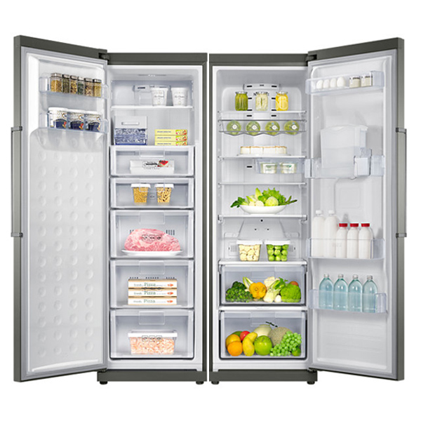 یخچال تک درب و فریزر تک درب دوقلوی بلند جدید سامسونگ به لطف رتبه انرژی A++ اتحادیه اروپا از مواد غذایی و نوشیدنی به نحو مطلوب محافظت به عمل می آورد. سیستم «سنسور هوشمند» آن از تعدادی سنسور داخلی و خارجی برای بهینه سازی درجات دما و رطوبت و کاهش مصرف انرژی بهره می برد. و مصرف انرژی کمپرسور اینورتر دیجیتال آن از کمپرسورهای معمولی کمتر است، چراکه تنظیمات تعدیل کننده را بر اساس الگوهای مصرف شما انجام می دهد. صرفه جویی در مصرف انرژی به معنای پرداخت مبلغ کمتر در قبض برق نیز می باشد.