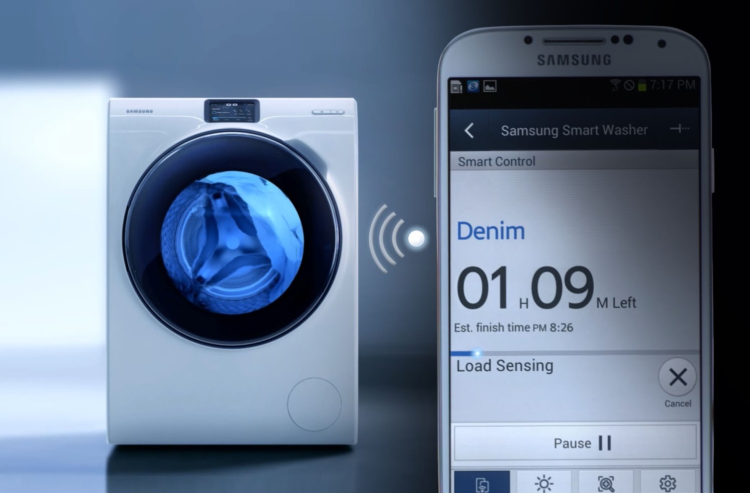 یکی از جدیدترین فناوریها در ماشین لباسشویی جدید سامسونگ به نام کریستال بلو (Crystal Blue) بهکار گرفته شده که قابلیت شستشوی هوشمند و کنترل از طریق وای فای را دارد. با این امکان جدید به راحتی میتوان از خارج از منزل و با تلفن همراه، دستور آغاز شستشو را داد و بر تمام مراحل شستشو نظارت کرد.
