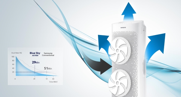 •دستگاههای تصفیه كننده هوای سامسونگ با تكنولوژی ابتكاری و انحصاری دکتر ویروس و ایجاد یونهای مثبت و منفی، ضمن از بین بردن عوامل آلرژی زا، باكتریها، ویروسها، قارچها، بوهای نامطبوع و گردو غبار، هوای اتاق را به طور كامل تصفیه میكنند.