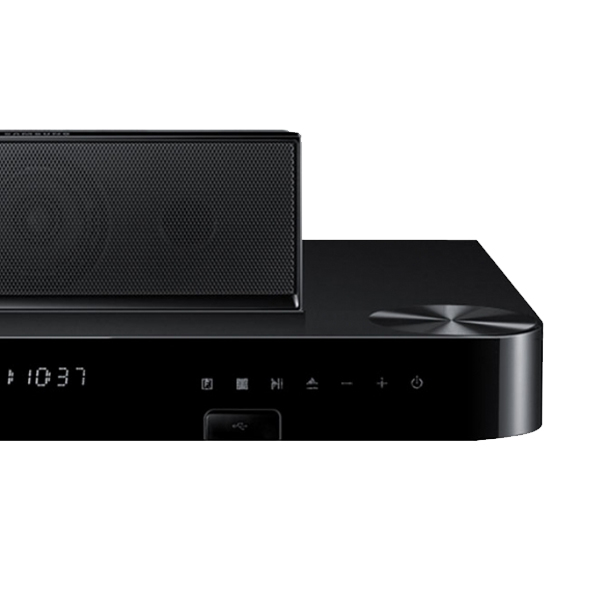 بلندگوهای پرقدرت این سینمای خانگی به کمک فناوری DTS خروجی صدای عمودی دستگاه را افزایش داده و صدایی کاملا فراگیر بصورت افقی و عمودی تولید می کند و امکان تماشای تصاویر 3 بعدی را در کنار صدای 3 بعدی فراهم می آورد. این دستگاه مجهز به قابلیت پخش سه بعدی بلوری و دی وی دی بوده و این امکان را به شما می دهد تا فیلم های موجود روی دیسک های DVD را با بهترین کیفیت تماشا نمایید. فناوری All share به کمک قابلیت WiFi-direct امکان اتصال تبلت، لپ تاپ یا تلفن همراه هوشمند سامسونگ خود را بصورت بی سیم به سینمای خانگی فراهم کرده و می توانید فایل های فیلم، عکس و موسیقی را تا فاصله 40 متری روی سینمای خانگی به اشتراک بگذارید.
